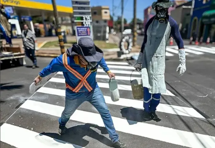 Araçatuba - SP Araçatuba implanta pintura viária com tecnologia termoplástica em cruzamentos da Prestes MaiaAraçatuba implanta pintura viária com tecnologia termoplástica em cruzamentos da Prestes Maia 24/04//2026