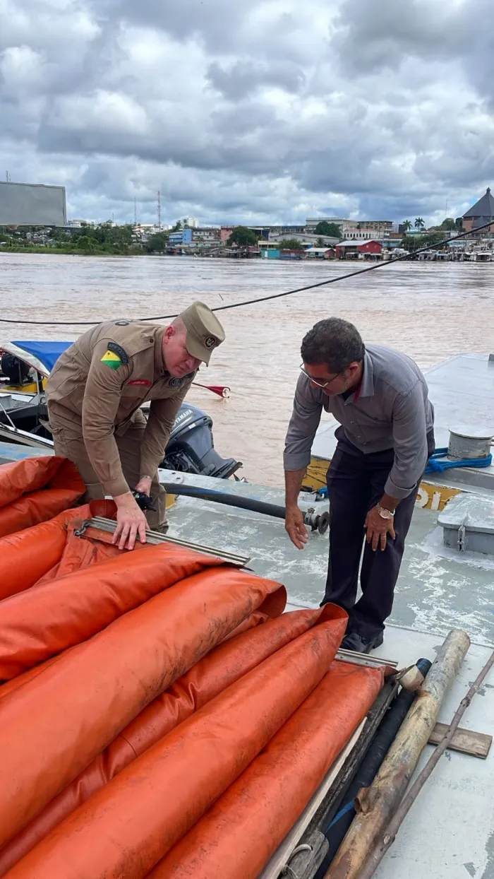 Acre Governo monta força-tarefa e usa barreiras de contenção para tentar conter avanço de óleo no Rio Tarauacá